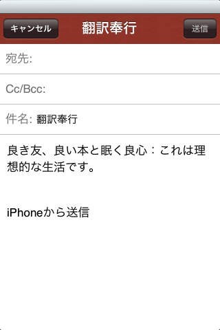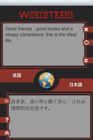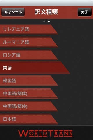 上下に分かれた文字表示画面の上部に単語や文章を入力すると、下部には翻訳された文が表示されます。翻訳元と翻訳後の各言語は56種類から自由に組み合わせることができ、また44種類の言語は翻訳を音声として再生することもできます(有償版)。翻訳元に日本語を設定しておけば、何時でも何処でも入力した日本語文章を外国語に変換できるので、現地の言葉が解らなくとも対応には困らないでしょう。海外出張や外国旅行でも臆する事無く振舞えそうです。
