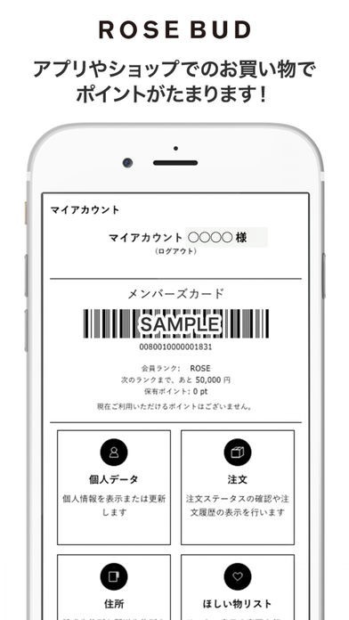 ROSE BUDの最新情報やアプリ限定の特別情報が得られ、商品を購入できポイントがためられるアプリ