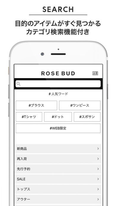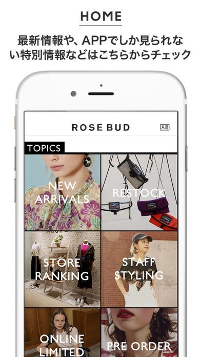 ROSE BUDの商品の最新情報、アプリ限定の特別情報、お得なセール情報など全ての情報をいち早くゲットできるアプリです。プッシュ通知機能を利用すれば、更に最新情報を手に入れることができ便利です。