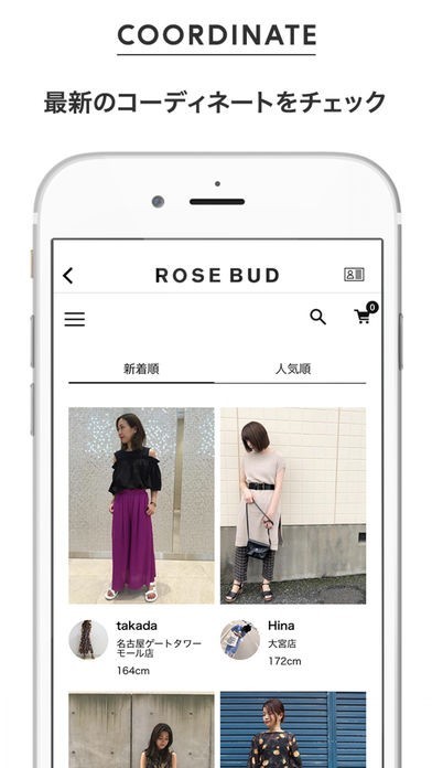 ショップスタッフのお洒落なコーディネートが見られる。気に入った商品はアプリから購入できる