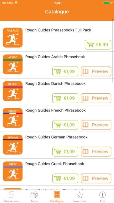 Download it for free, test it for as long as you need and buy the full version of any phrasebook of your choice through an in-app purchase!