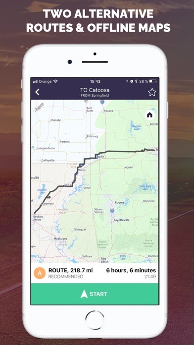 Thanks to Route 66 Navigation app you can fully enjoy your trip through Route 66 without stress and worry. Every mile of Route 66 has been carefully charted and considered as we chose the most beautiful and most interesting sections with hundreds of POI attractions.