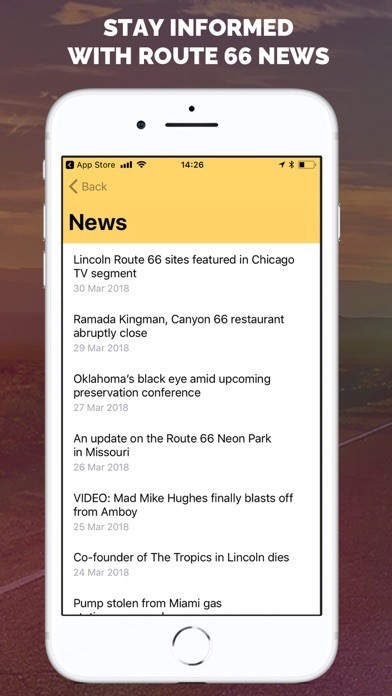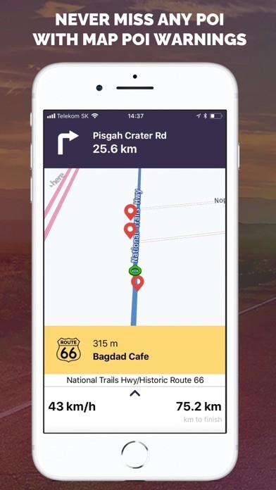 Route 66 Navigation is a free app with In-App Subscription for full navigation features. The free app allows you to view all the POI, events on Route 66, news, send your travel report or use S.O.S functionality.