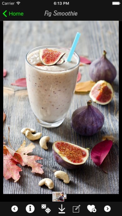 スムージーの作り方が細かく確認出来るようになっています。写真の表示に対応していて、リスト形式でレシピが表示出来るのも魅力でしょう。画像の拡大が行えるのも利点ですね。