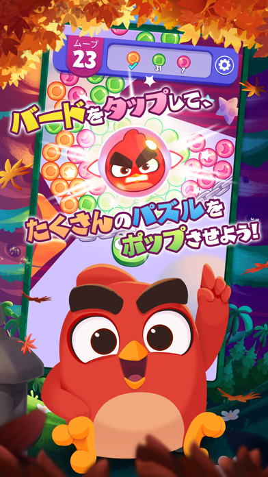 決められた操作数以内に、決められた数のバブルや卵を消したらクリアです。アングリーバードのボムを使えば、バブルを一掃することができます。アイテムを使うとバブルをシャッフルしたり、物体を消すことが可能です。