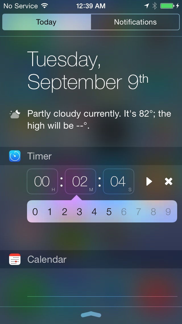 App Storeより引用Today Timer is a quick and simple timer app, designed to take advantage of the latest and greatest features in iOS 8. The app comes with a companion widget that allows you to easily view how much time is left on your timer through the notification center. From there you can also set the time using a very slim, numeric keyboard, which enables very quick input. Just tap on the hours, minutes, or seconds to set the time. You can also start/stop/pause/reset the timer from the widget.
