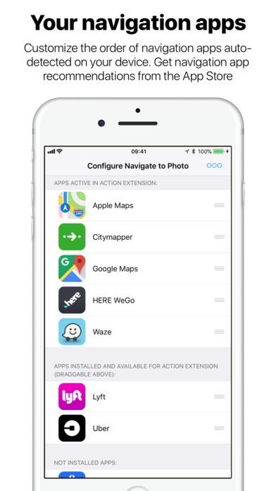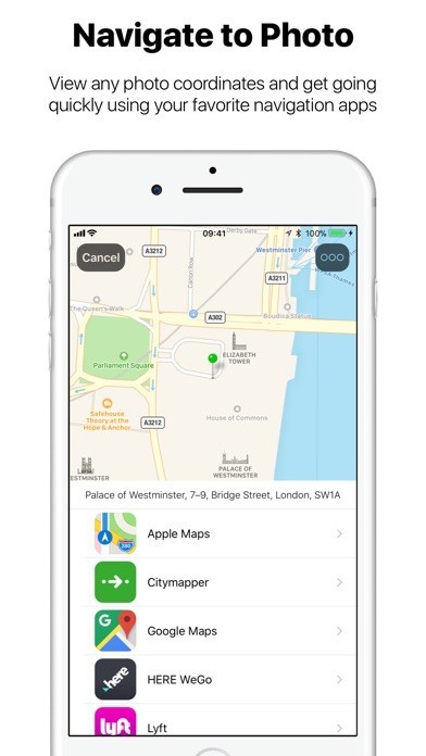 App Storeより引用Navigate to Photo is a convenient way to navigate to any photo taken with location data, with your favorite navigation app, from any app using iOS built-in share sheet!