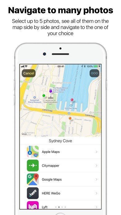 - Select up to 5 photos, see all of them on the map simultaneously and navigate to the one of your choice.