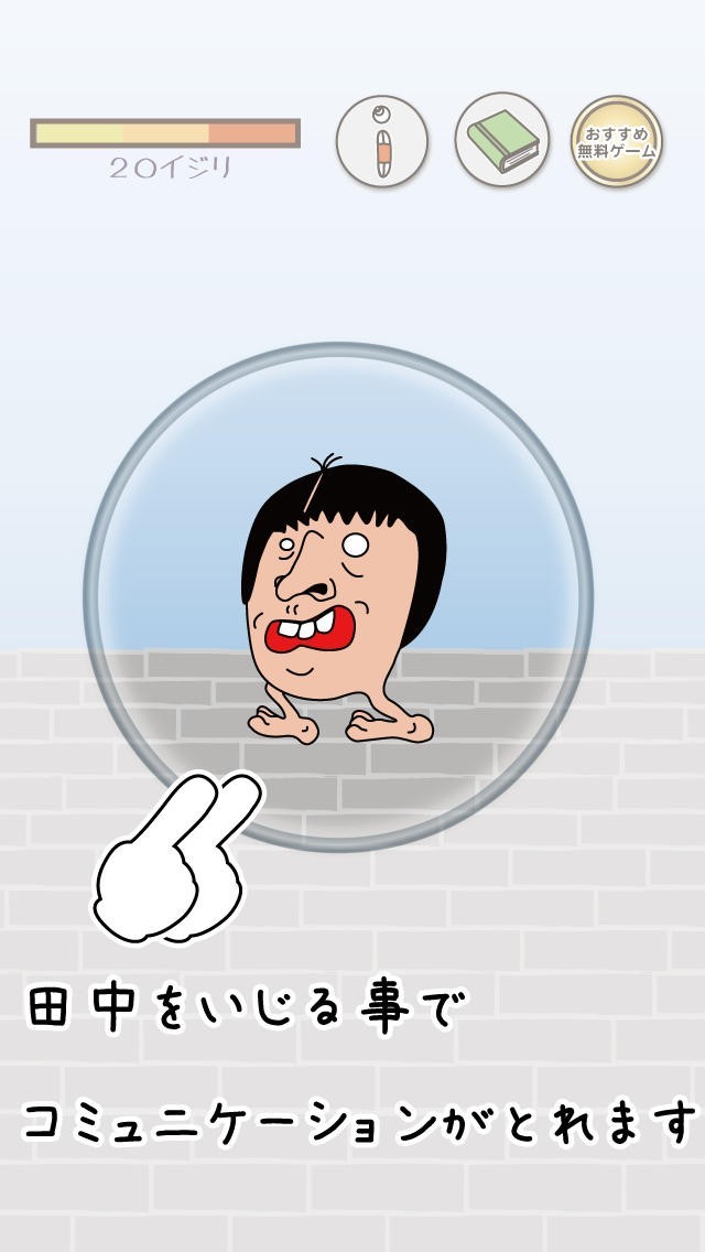 イジリー田中は、生まれたばかりの赤ちゃんの頃から、進化していく成長を見守っていくゲームです。見た目が気持ち悪いのですが、不思議と惹かれます。かわいがり方は、田中をタップすることです。タップの回数が多いほどコミュニケーションが取れたり、進化していきます。攻略は、たくさん田中をタップします。タップするたびに、田中はコメントをするので目が離せません。タップした回数は記録に残ります。どんな風に進化するのかは、かわいがり方によって違ってきます。タップしていくうちに、面白くなり愛着がわいてきます。暇つぶしになり、新しい友達ができた感覚で遊べるゲームです。