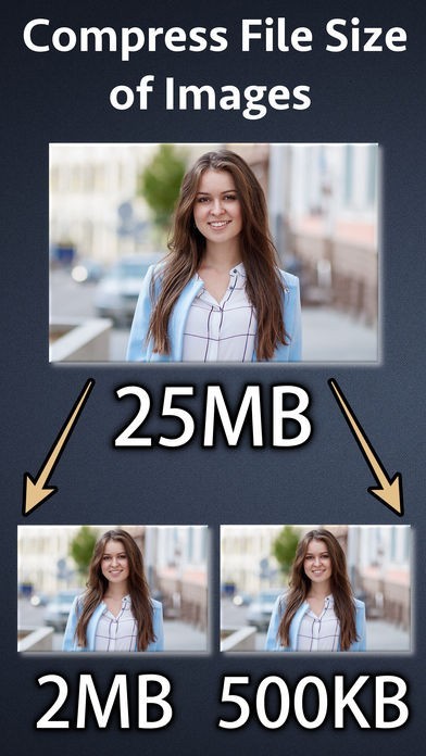 For example : If your photo has size of 25 MB and you want to reduce its size to 2 mb.You could do this using the application.The application will reduce the photos to the size that suits your requirements.