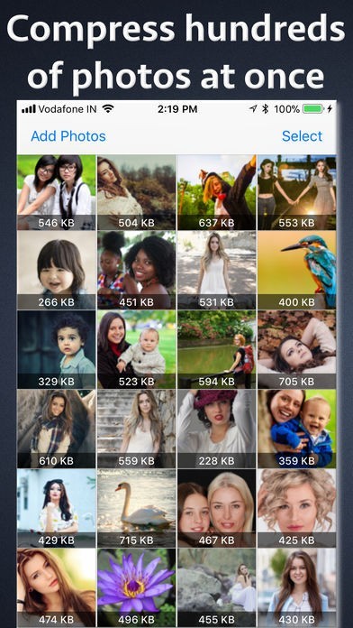 -- Add multiple photos selectively and compress all photos.