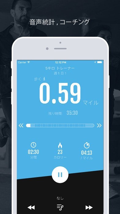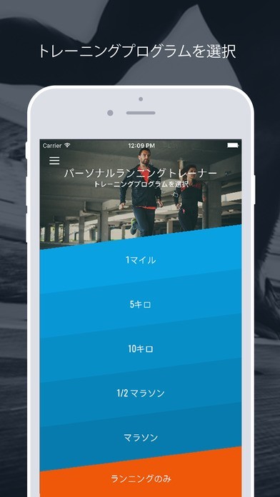 App Storeより引用あなたの目標が短距離でもマラソンでも、パーソナル・ランニング・トレーナーはあなたの一歩と共にあります。音声指示が、あなたのタイム、距離やペースについてリアルタイムに詳しくアップデートしてくれます。インターバル・トレーニングプランは、あなたの目標距離に合わせたワークアウトを通してコーチングしてくれます。搭載された音楽プレーヤーがあなたのモチベーションを保ちます。ワークアウトはそれぞれ異なります。トレーニングプランには4〜16週間の幅があり、週に3〜4回のワークアウトがあります。