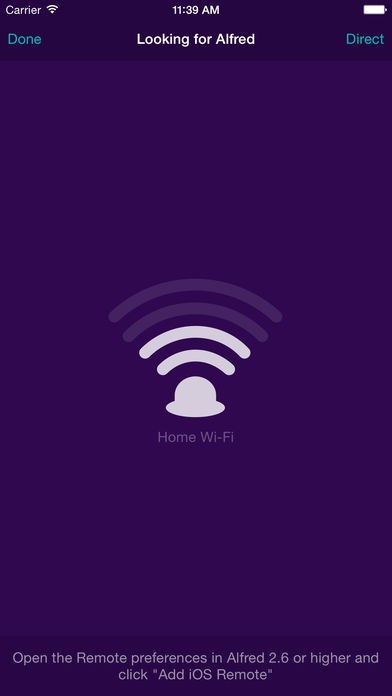3. Open Alfred Remote on iOS to the 'Add' screen, "Looking for Alfred"