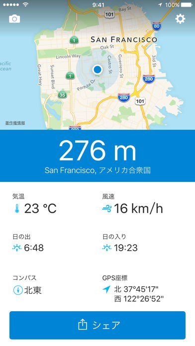 登山の楽しみは自然に触れることはもちろん、より高い山を制覇することにあります。 「Runtastic Altimeter 登山用GPS高度計測アプリ - 標高(海抜)を写真に表示・日の出や日没時刻を確認」は、GPSの位置情報によりユーザーがいる場所の高度を教えてくれます。ただ高度の情報を得られるだけではなく、写真を撮る際に、現在の高度を写真に表示させることが出来るのです。 山頂から撮った風景であれば、添えられた数字がそれまでの道のりを感慨深い思い出としてよみがえらせてくれます。 また、写真は直接SNSでの共有が可能なため、友人とのコミュニケーションにも役立ちます。