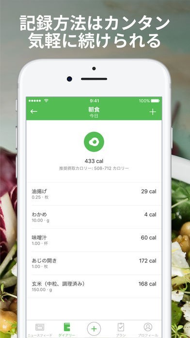食事のカロリーを計算してくれるから毎日のダイエット食事をサポートしてくれて助かる。