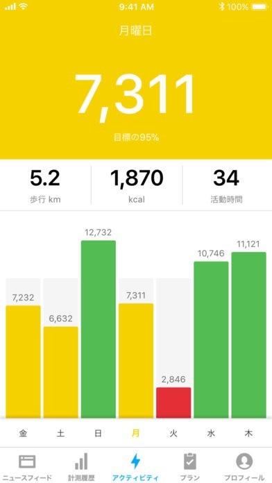 スマートフォンを歩数計のように使用することができるアプリとなっていて、ウォーキングなどの歩数や移動距離、消費カロリーなどを計測することができるようになっています。