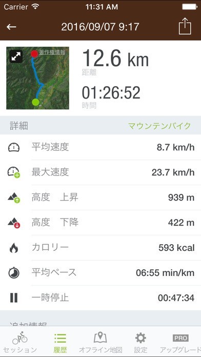 マウンテンバイクで移動中に速度や消費カロリーなどをリアルタイムで表示できる!