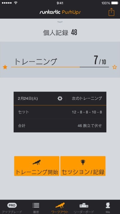 Runtastic 腕立て伏せ回数カウントのスクリーンショット