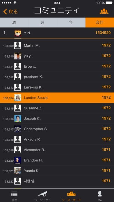 ・個人記録と合計達成回数をランキングで他のユーザーと競争