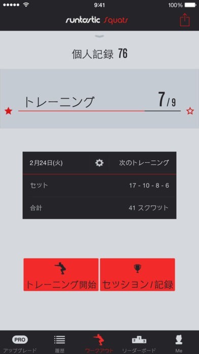 スマートフォンのセンサーを利用してスクワットの回数を自動的にカウントすることができるアプリとなっていて、インターバルタイムも自動的に計測してくれるようになっています。