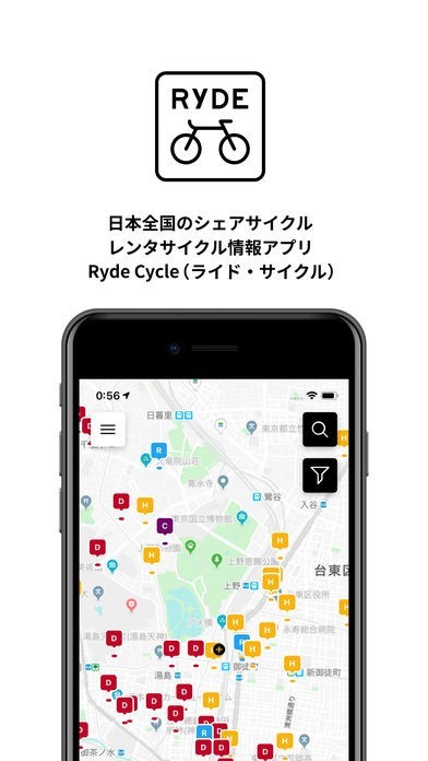 App Storeより引用Ryde Cycle (ライド・サイクル) 日本全国のシェアサイクル・レンタサイクルアプリ