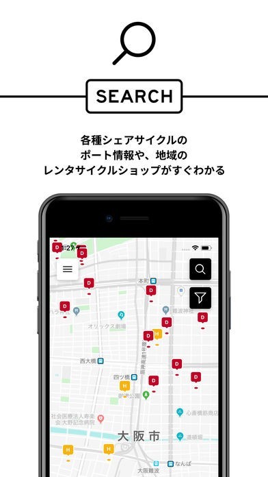 *シェアサイクルのポートやレンタサイクルショップの情報に不備や過不足がございましたら、アプリ内のお問い合わせフォームよりご連絡を頂けますと幸いです。頂戴致しました情報を確認出来次第サービスへ反映させて参ります。