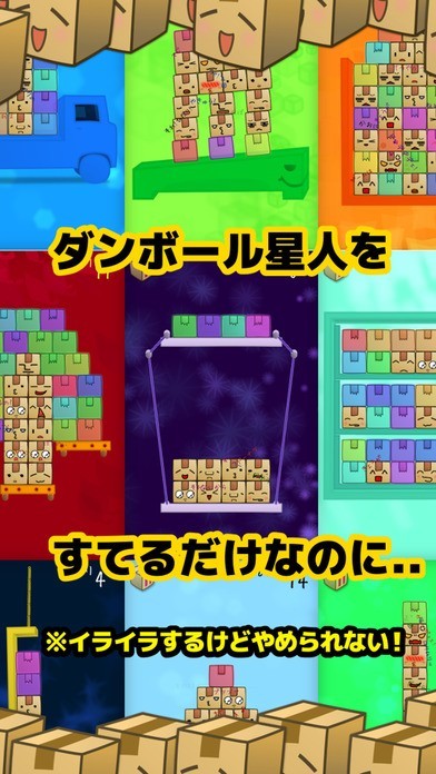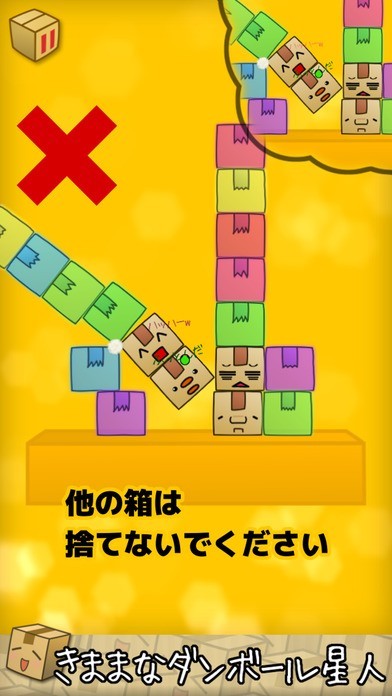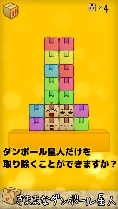 ダンボール星人を取り除くぐらぐらバランスアクションパズル。