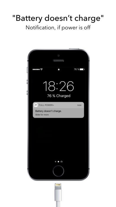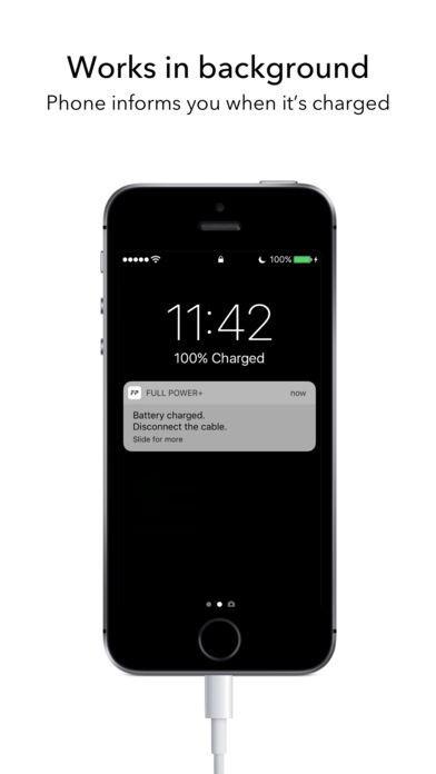 At 100% battery, starts vibration and sound signal, notification appears on the lock screen.