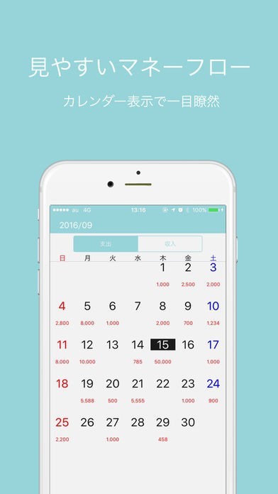 収支情報をカレンダーにまとめて登録出来るスマホアプリ