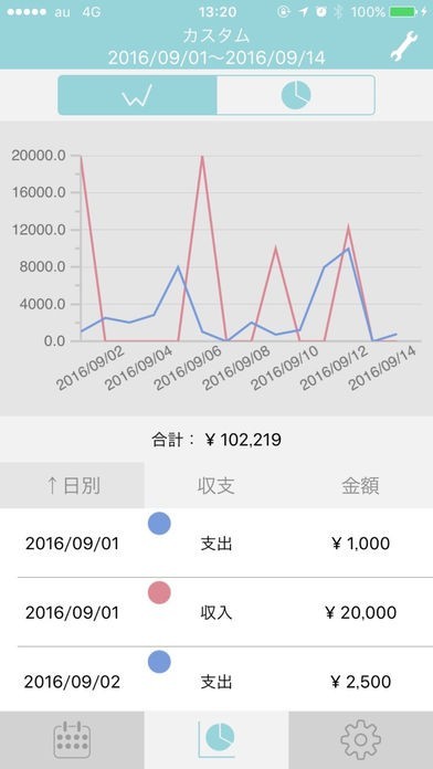 カレンダーに収支情報を保存出来る!日別や週別でも整理していける