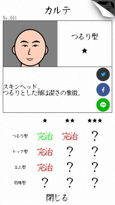 個性的なイラストは見るだけで笑いを誘います。ゲームの最初に登場するハゲ科の掟がシュールです。カルテの説明も面白く書いてあり、笑わずに読むことは難しいです。最初から最後まで笑いの絶えないアプリです。