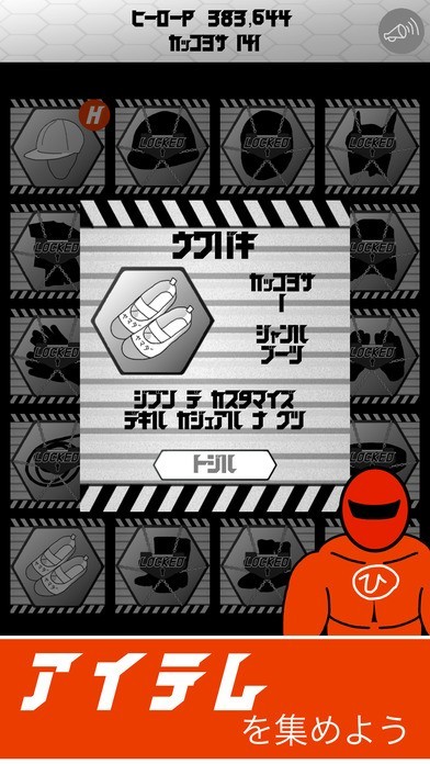 ヒーローアイテムをタップで回収してかっこよさを上げることが出来る!