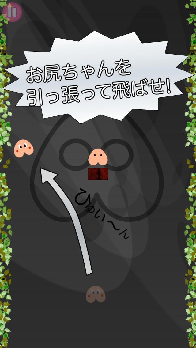 プリけつ:画面の左側をタッチすれば左方向に、右側をタッチすれば右方向に飛ぶぞ!