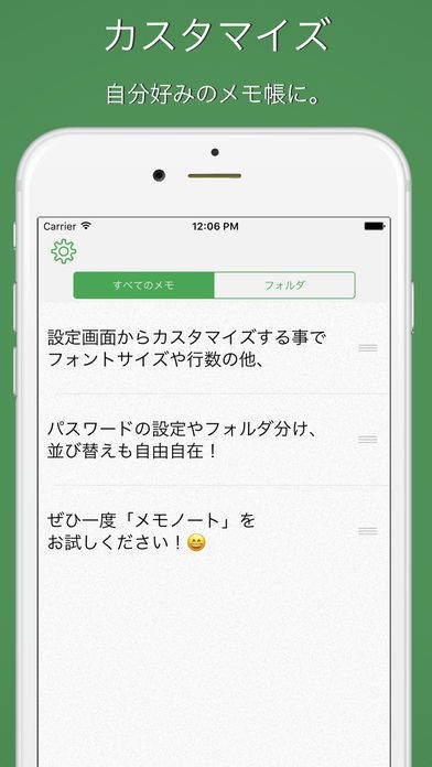 パスワード機能搭載で秘密の日記もしっかり守る!メモのジャンルごとに管理できるフォルダ分け機能も便利!