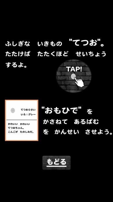 女子が好きなものといえばちょっときもくてかわいいものと相場が決まっています。「てつお」は、そんな不思議なキモカワ動物を育てることができるアプリです。鉄を鍛えるようにiPhoneの画面を繰り返しタップすることによっててつおは成長していきます。経験値をゲットすれば、てつおとのおもひでも蓄積していくので写真に残しておきましょう。ほかのユーザーと経験値の量を競うこともできます。てつおフィーバータイムなど脱力系の演出にもこだわりがあります。