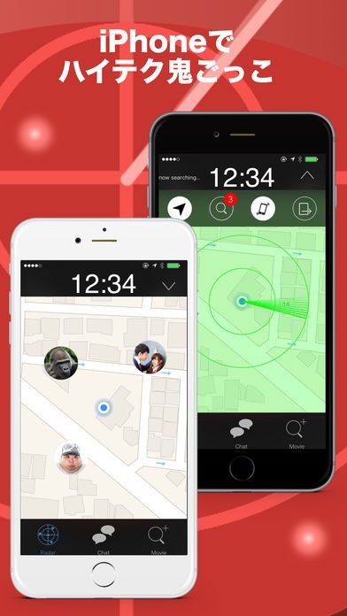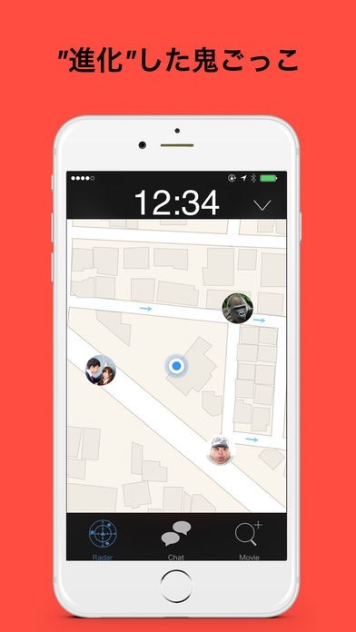 鬼ごっこを行う時に、スマホに表示された地図上にレーダーを使ったようにプレイヤーの位置を表示することができ、広範囲での鬼ごっこができるようになります。チーム分けが可能なため、けいどろ(どろけい)などにも対応しています。