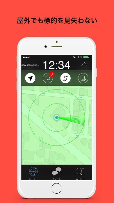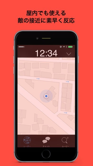 敵が近づいてくると画面が赤くなり、距離に応じて点滅が早くなる探知機能が搭載されています。探知機能をオンにすることで、このアプリを比較的狭い場所での鬼ごっこや屋内でのかくれんぼのサポートツールとしても利用することができます。