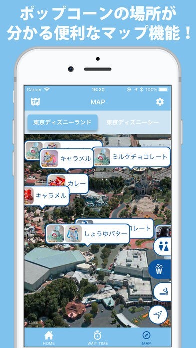 ポップコーンの販売場所やトイレの位置をマップで調べられる