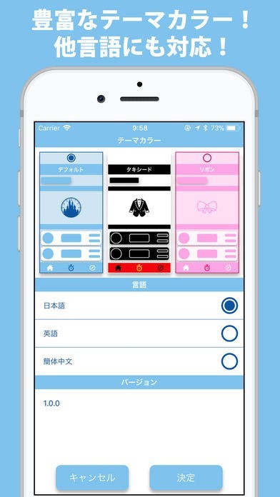 フィルター機能が用意されているので、特定の施設やイベントが簡単に検索出来ますよ。テーマカラーや言語の変更に対応していて、お勧めのアトラクションも一覧で示してくれます。