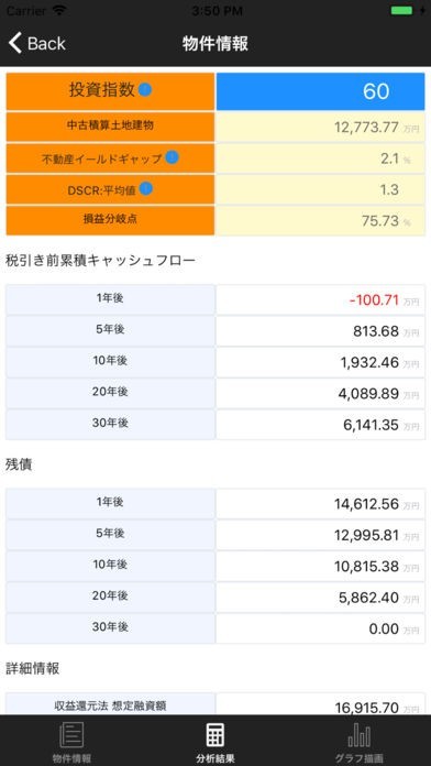 「CashflowNavi for Cloud」を使えば、購入したマンションがどのくらいの期間が経過すれば利益を生み出すかが計算できます。それぞれの物件についてグラフを作成することも可能です。