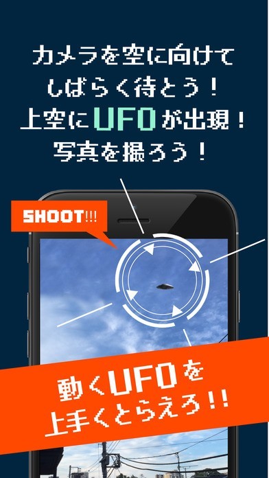 アプリを起動して好きなところに向けると出現するUFOを撮影することができる!
