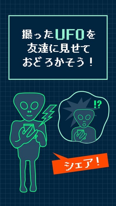 何気ない風景の写真を面白い写真にすることができるカメラアプリが「そんな事より完全にUFO飛んでる!」になります。スマートフォンのカメラを上空に向けているとどこからともなくUFOが現れるので、画面内に上手に収めて撮影をすることでUFOが写った面白い写真を撮影することが出来るので、暇つぶしや友達同士で盛り上がれる写真を撮りたいときにぴったりなアプリになります。出現するUFOにはいくつかの種類が用意されているので、全種類のコンプリートを目指すのも楽しみの一つです。撮影した写真は長押しすることで簡単に保存をすることができるようになっています。