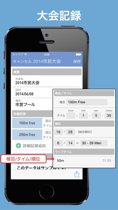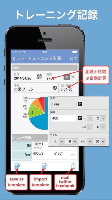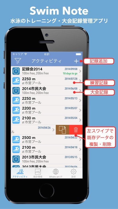 スイマー必見!日頃のスイミング記録を手軽に残せる!
