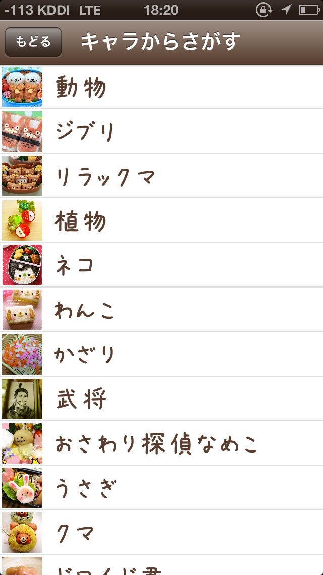 かわいいお弁当検索:色・キャラ・材料からおいしいキャラ弁や手軽なおかずを簡単サーチ!のスクリーンショット