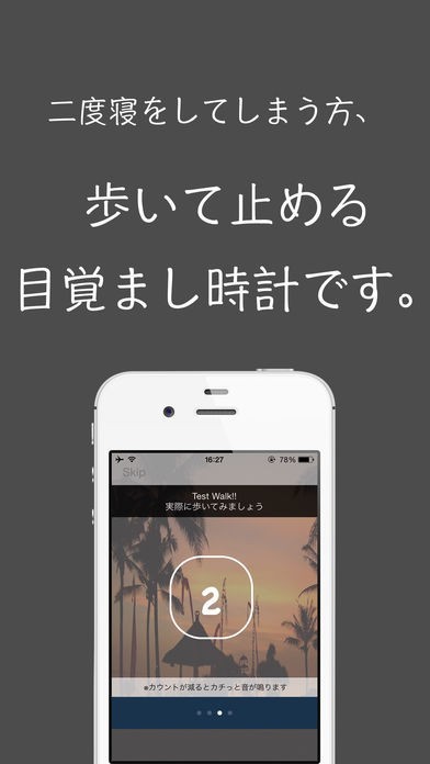 (AlarmWalkのプッシュ通知を許可していない場合は鳴らないため許可してください。)