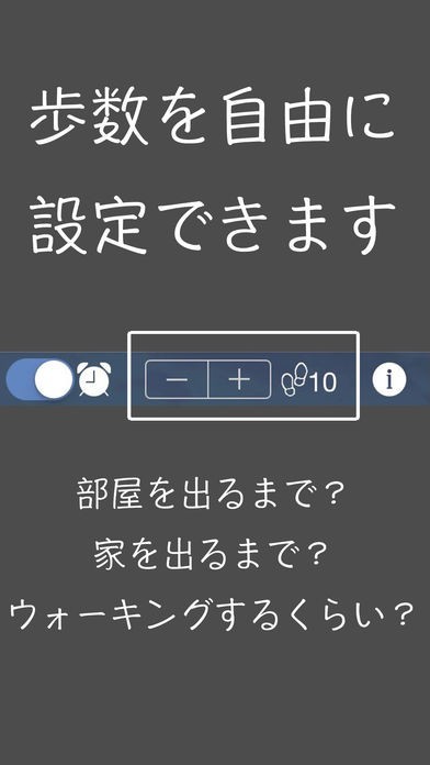 歩数は部屋を出るくらい〜家を出るくらいまで自由に設定できます。