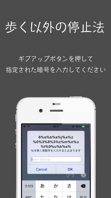 どうしても歩けない状況のときはギブアップボタンを押して指定された暗号を入力してください。