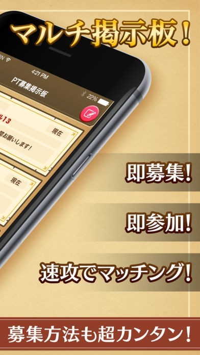 ゲームをもっと効率よくプレイしたい方にとっておきのアプリです。マルチ掲示板でいつでもゲームに参加できますし、すぐにマッチングしてくれるのでストレスフリーでご利用いただけますよ。