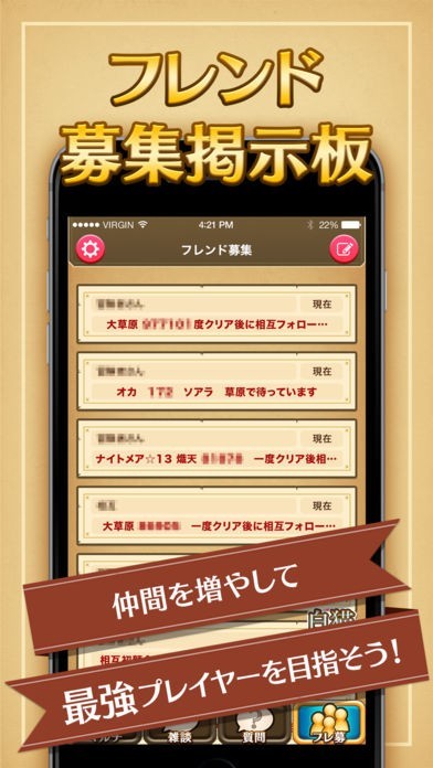 フレンド掲示板で気の合うユーザーを探せる