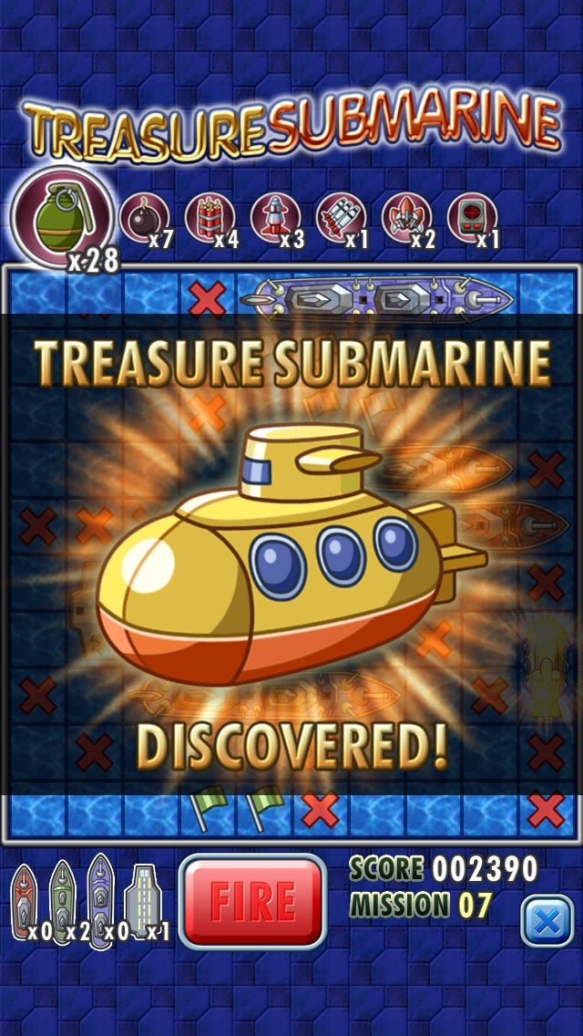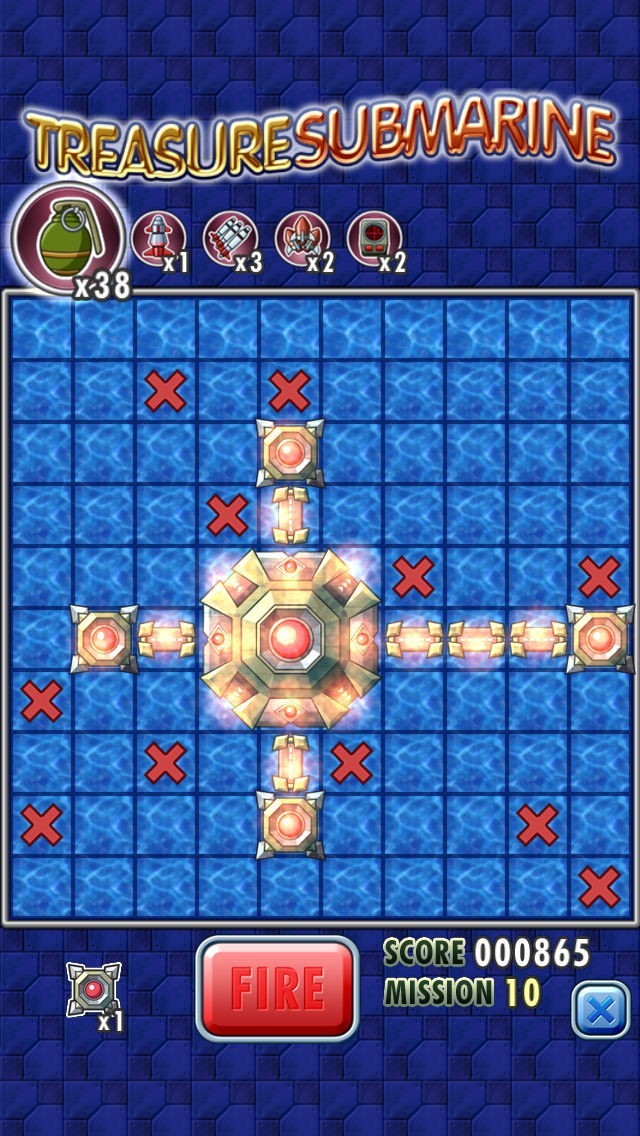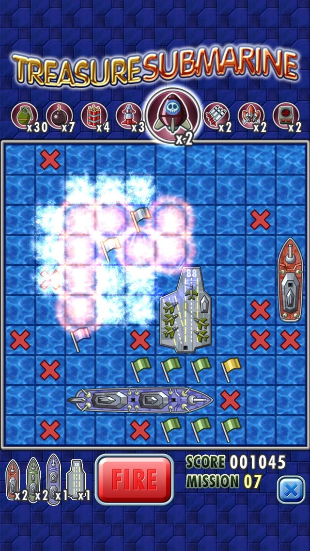 海面下に隠れているバトルシップ(戦艦)すべてを、供給された武器を使って爆撃するのが目的です。隠れキャラの潜水艦を見つけると、より強力な武器が手に入るかも・・・?